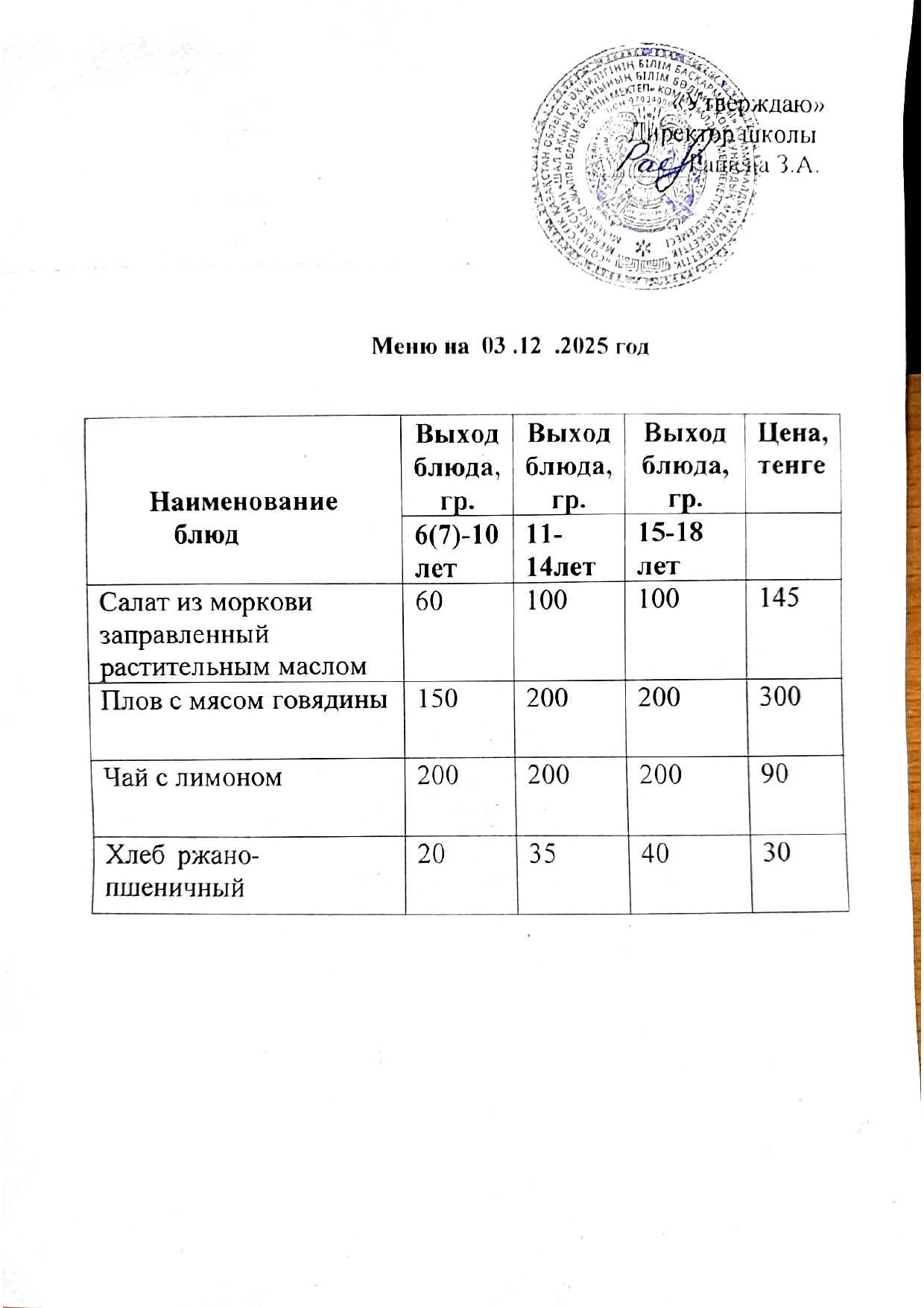Меню на 03.12.2025